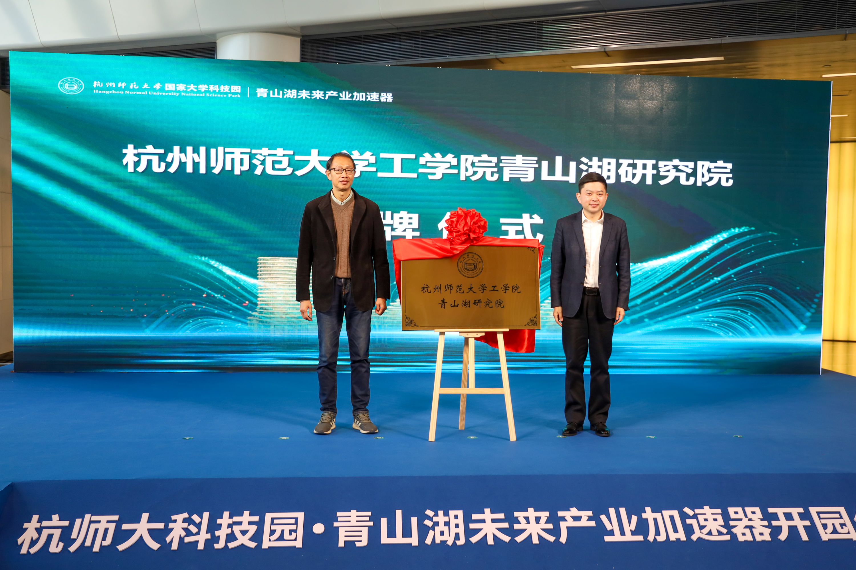 杭师大工学院青山湖研究院揭牌 现场,胡华与王学超共同为杭师大工学院青山湖研究院揭牌,标志着研究院正式入驻青山湖加速器。未来,该研究院将协同杭州师范大学国家大学科技园“创新资源集成,科技企业孵化、科技成果转化”三大功能,推进公共服务平台建设,推动地方的产学研合作与产业升级,实现校企资源共享,为园区及青山湖科技城的企业提供技术支持,加速高新技术企业成长。