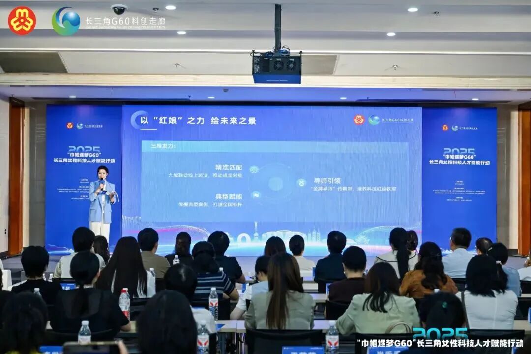 科创她力量,巾帼向未来。9月2日,2025“巾帼逐梦 G60”长三角女性科技人才赋能行动在杭州未来科技城成功举办。来自长三角G60科创走廊九城市妇联、科协等单位相关领导以及女性科技人才及女企业家、杭州女企协、女科协、杭州科研院所、高校及技术经纪人代表等100余人参加活动。