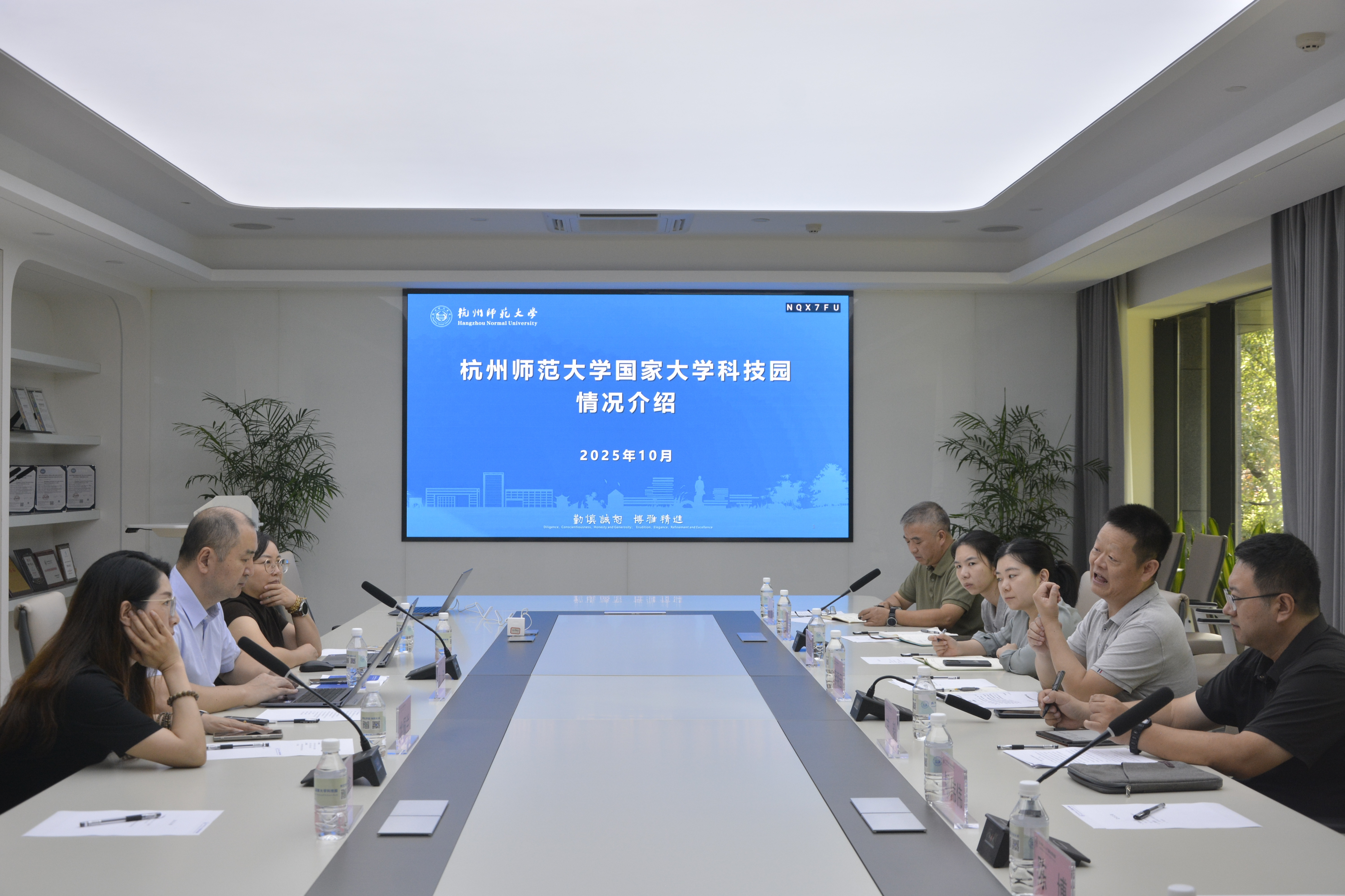 10月16日,青山湖科技城管委会科技和人才服务部副部长李晓云带队调研杭州师范大学国家大学科技园,科技园总经理钱波等接待调研。