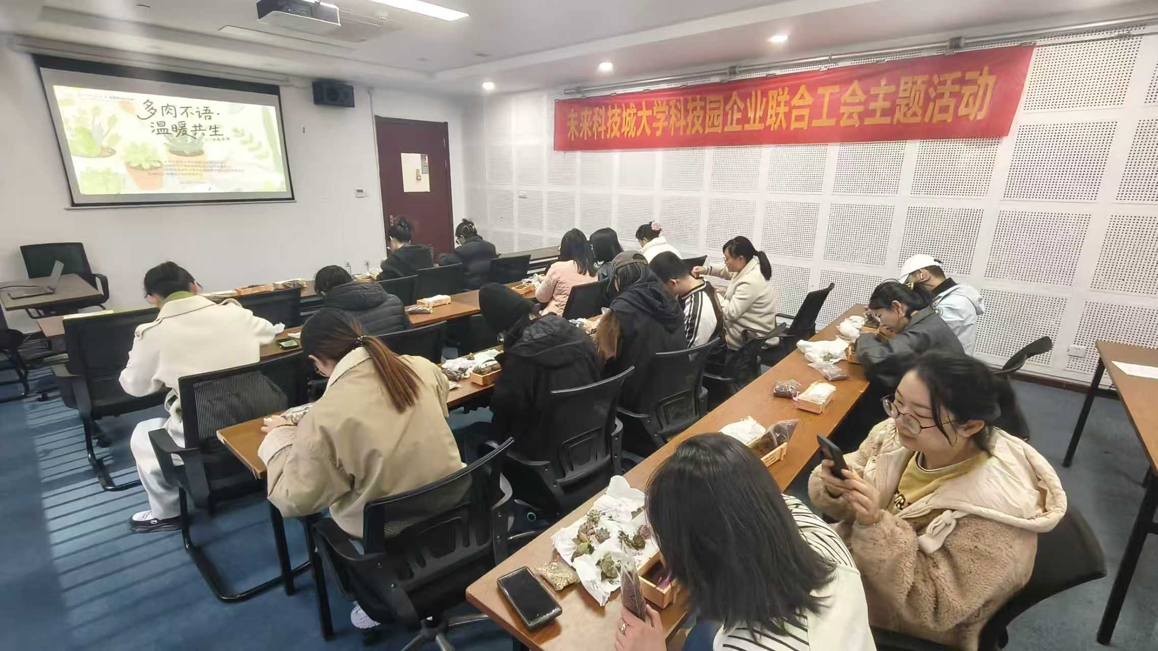 秋意渐浓,杭州师范大学国家大学科技园内迎来一段静谧的绿色时光。近日,一场名为“多肉不语·温暖共生”的DIY沙龙在科技园E座二楼202创客会议室温暖开展。本次活动由未来科技城大学科技园企业联合工会、杭州师范大学科技园园区企业妇女联合会、中共杭州师范大学科技园发展有限公司支部委员会联合主办,泰隆银行余杭瓶窑支行支持,吸引了园区二十余名企业职工齐聚一堂,在方寸盆栽之间,开启一场与自然对话的手作之旅。